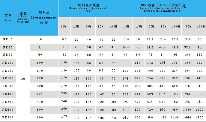 NE系列鏈?zhǔn)教嵘龣C(jī)(輸送機(jī))可以分為如下型號(hào):NE15、NE30、NE50、NE100、NE150、NE200、NE300、NE400、NE500、NE600、NE800。